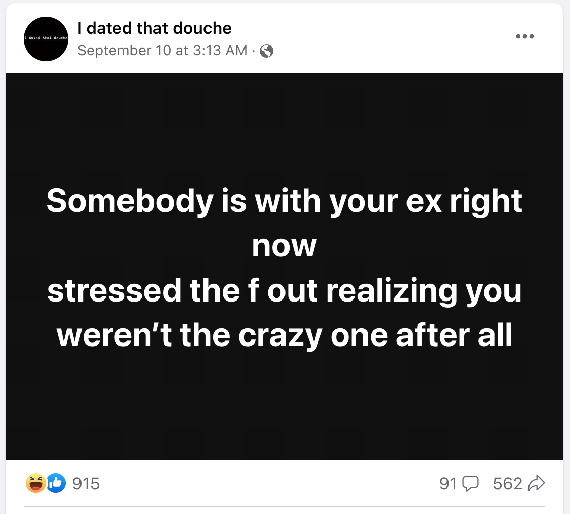 If you doubt that people do, in fact, love assholes, just take 2 minutes to scroll through your social media feed. You’ll find endless memes on brilliantly titled accounts like “I dated that douche,” and woeful TMI updates from your recently ghosted friends.